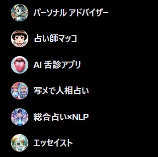 1. 占いアプリ(GPTs): 星座や生年月日を基にしたパーソナライズされた運勢を提供。代表的な運勢判断法の総合データを基にしているので良く当たると評判。